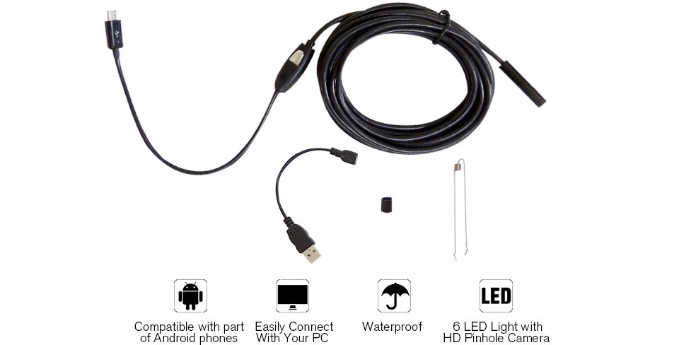Mini digitální Endoskop s 6 nastavitelnými LED diodami s microUSB portem pro telefony s OS Android s funkcí OTG a externí kamera